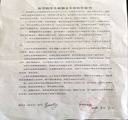 三是节前签订一份安全责任告知书。安全告知书主要是根据《员工伤害事故处理办法》(教育部令第12号),主要针对长假和小长假员工出行安全、财产安全、人身安全等问题而设定,是学校与员工本人之间签订的责任告知书。